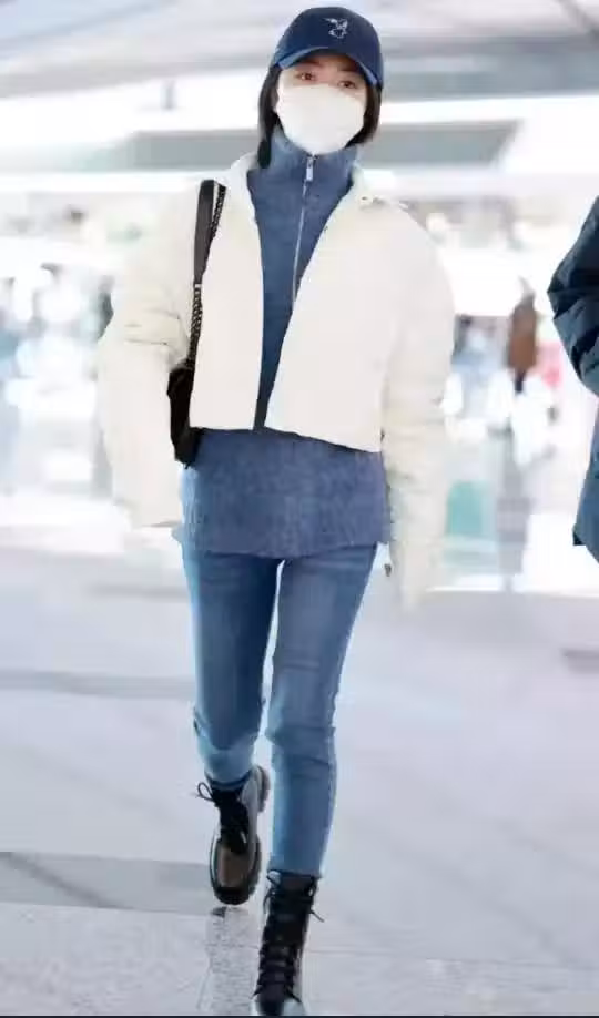 34歲譚松韻放飛自我,長毛衣外面套羽絨服,美到認不出~