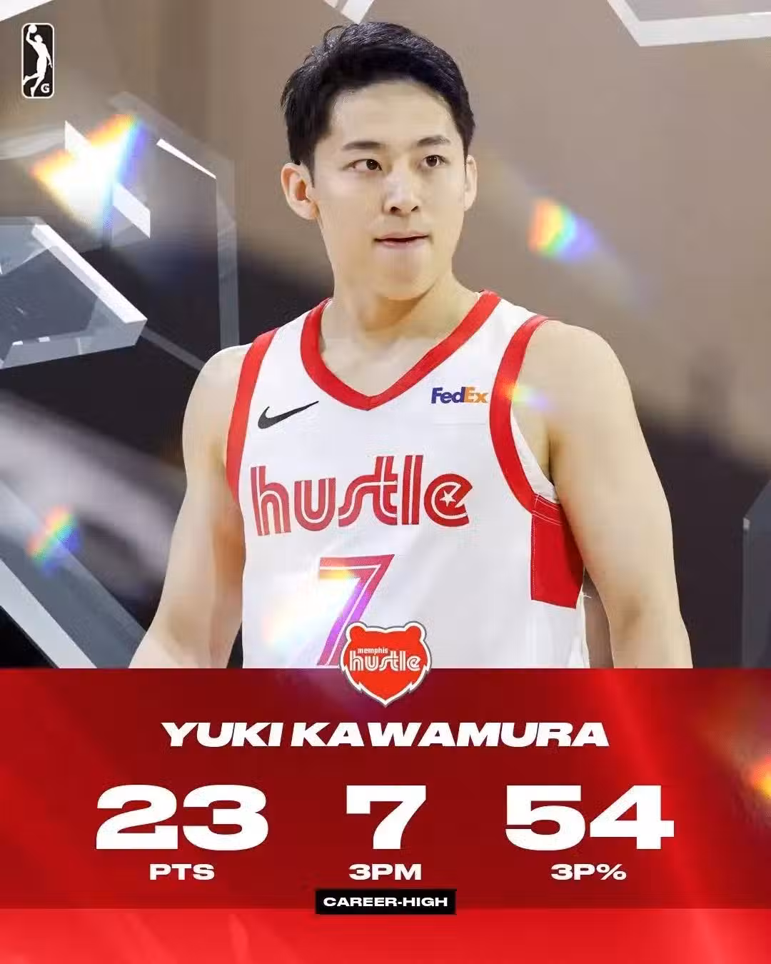 單場23分,是河村勇輝G聯賽生涯第二高,單場7記三分球則是G聯賽生涯新高。