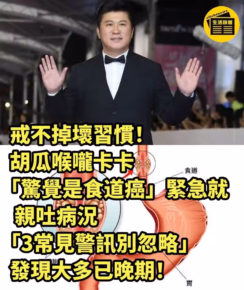 據《TVBS》報導,胡瓜在《醫師好辣》中坦言,最近因為一個明顯的症狀,嚇得他趕緊就醫!有段時間,他發現自己喉嚨很癢、吞咽困難,覺得怪怪的,想起自己平時有吃消夜習慣、加上愛喝熱湯,胃食道容易逆流,算是高危險群的一員...直到看完 醫生後,才終於鬆了一口氣。