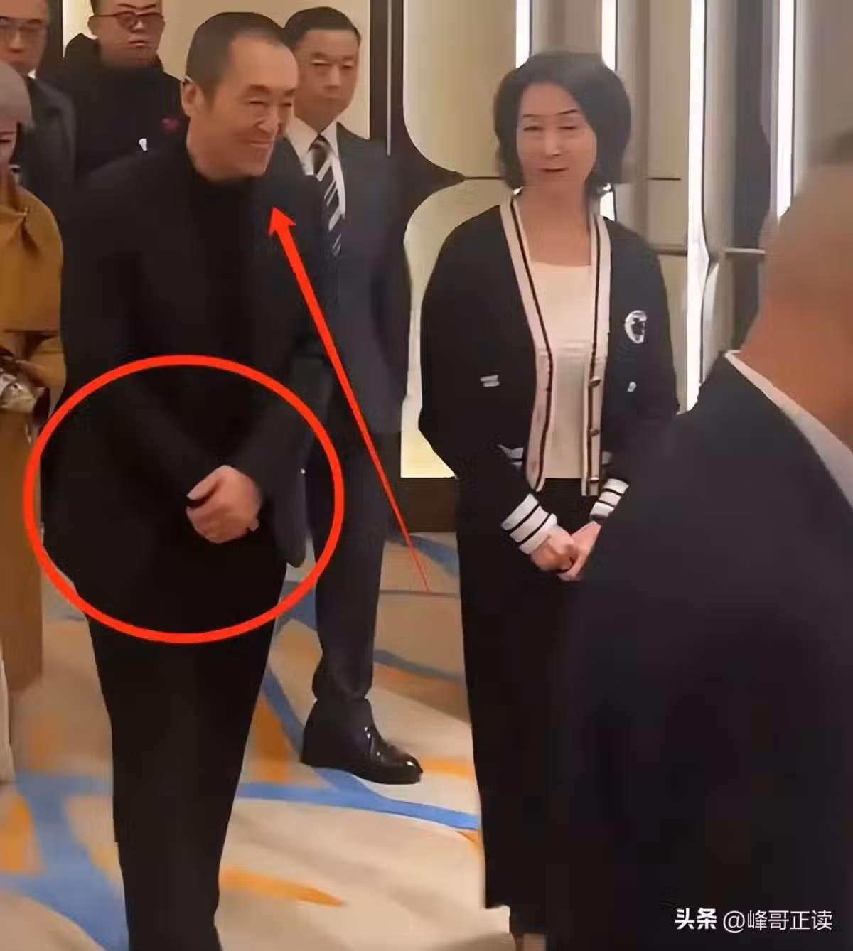 張藝謀作為舞台秀的導演,整個合照環節都有些緊張。