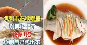 魚刺卡嗓子裡,千萬別喝醋吞米飯 簡單一招魚刺自己「跑出來」~