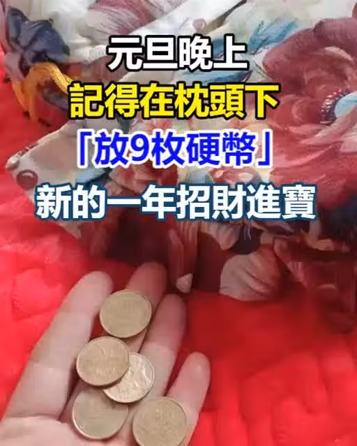 這是我聽90多歲的鄰居奶奶說的。 元旦的習俗雖然因為地域文化不同有所差異,但美好的寓意卻都是一樣的。 那大家知不知道其實元旦還有一個在民間流行的習俗? 就是元旦晚上在枕頭下面放9枚硬幣!但這個硬幣可不是隨便放的,是有講究的。 因為現在的人,生活節奏快,很多人都把這種習俗給忘記了,我也是前幾天回老家,又聽到90多歲的鄰居奶奶說的。 其實以前也聽鄰居奶奶說過,只不過那時年輕,聽在耳朵里覺得像迷信一樣,根本就不放在心上。 現在已不再少年了,也體會到了生活中的種種不容易。 再聽到鄰居奶奶說的時候,就覺得句句在理。