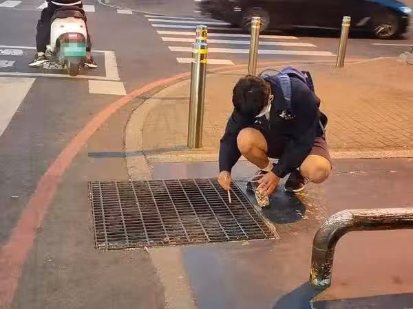 退休警感動:國家棟樑。高中生「蹲路邊遲遲沒站起來」畫面被拍下「看出台灣學生的素質」