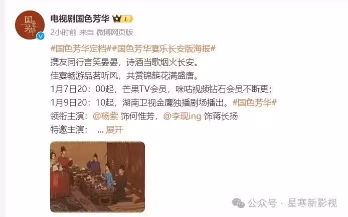 經過了數日的預熱,備受關注和期待的《國色芳華》在2025年的第一天正式定檔,確定將會在1月7日起上線芒果TV和咪咕視頻首播,並於1月9日起上星芒果台播出!選在了深夜定檔,《國色芳華》也是鉚足了勁要給觀眾驚喜了!