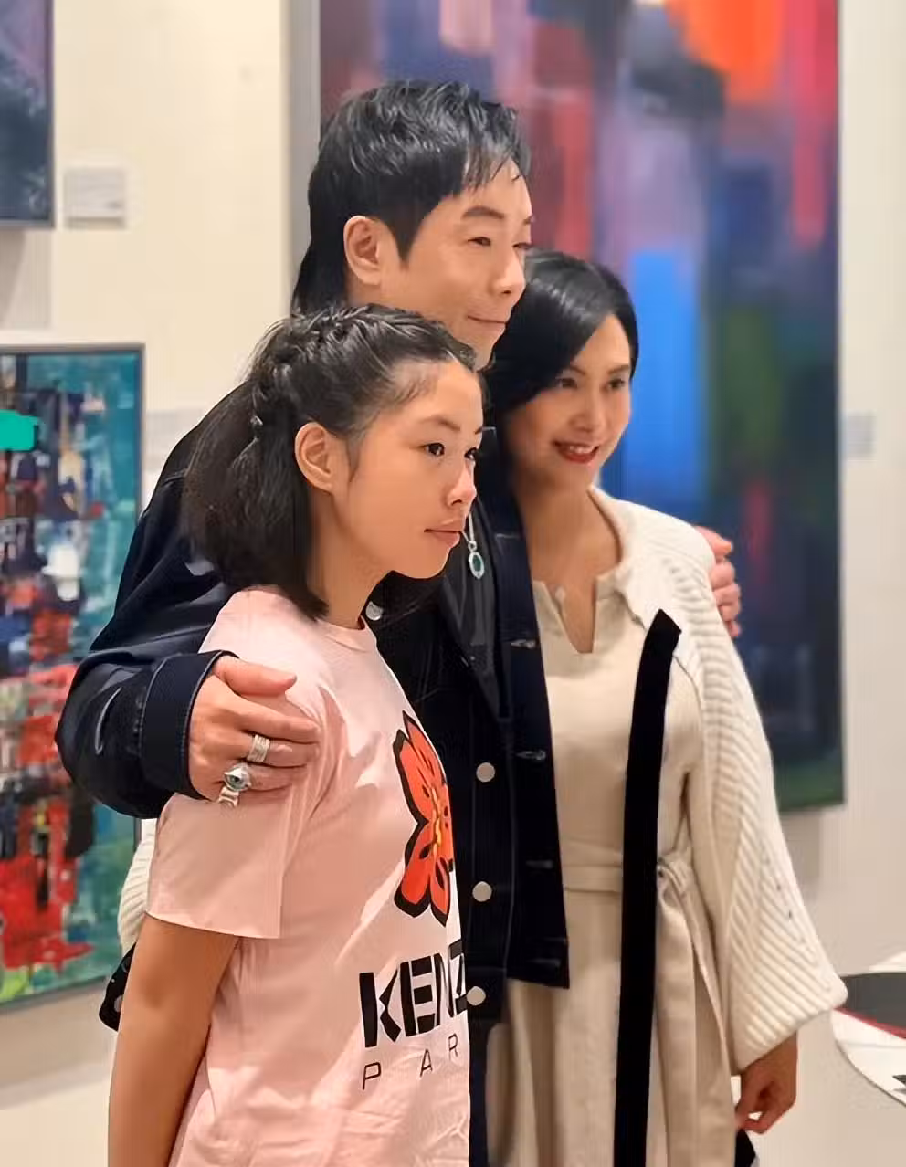 60歲黃貫中首開畫展,52歲朱茵攜12歲女兒露面,何超儀拄拐捧場