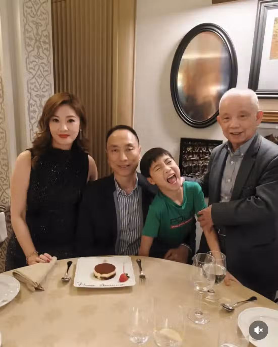翁嘉穗透露大兒子已經返回英國工作,所以一家人未能聚在一起,頗為可惜。而大兒子沒有到場,但是9歲的小兒子相伴在左右,他是一如既往地調皮可愛,對著鏡頭做出各種鬼臉。更為罕見的是,翁嘉穗的家翁,也就是鄔友正的父親罕見露臉。鄔友正今年71歲,言下之意他的父親至少也有90多歲。看樣子鄔友正的父親狀態不錯,頭髮已經全白了,但是精神奕奕,面色紅潤,比實際年齡要顯得年輕。在合照中鄔友正的父親兩隻手拉著孫子,對著鏡頭笑容慈祥,祖孫三代同堂,還別說三人長得簡直是一模一樣。