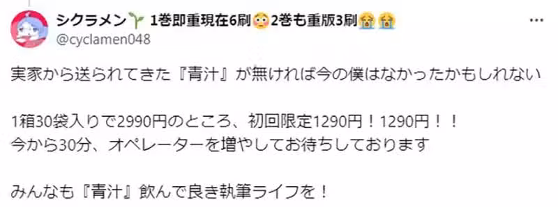我還以為是寫作心得分享,原來是青汁廣告啊!