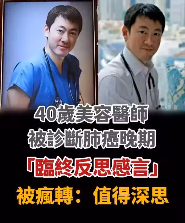 40歲美容醫師「被診斷肺癌晚期」不到半年逝世「臨終反思感言」被瘋轉 值得深思!