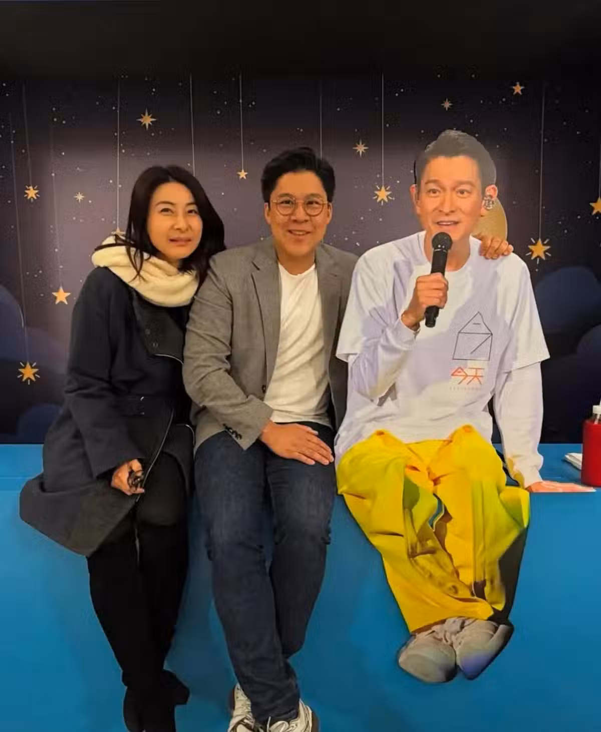 霍啟剛和郭晶晶還在打卡區拍了合影,霍啟剛坐在「劉德華」旁邊搭著他肩膀,郭晶晶坐在老公旁邊,夫婦倆面帶笑容幸福滿滿。話說「三人」同框畫面真的毫無違和感。