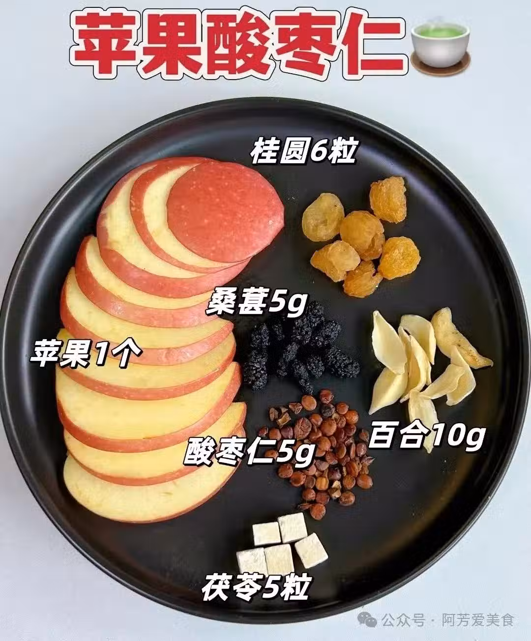 蘋果酸棗仁,蘋果搭配桂圓,桑葚和酸棗仁,口感非常的豐富。喜歡口感多的喝這款就夠了的。