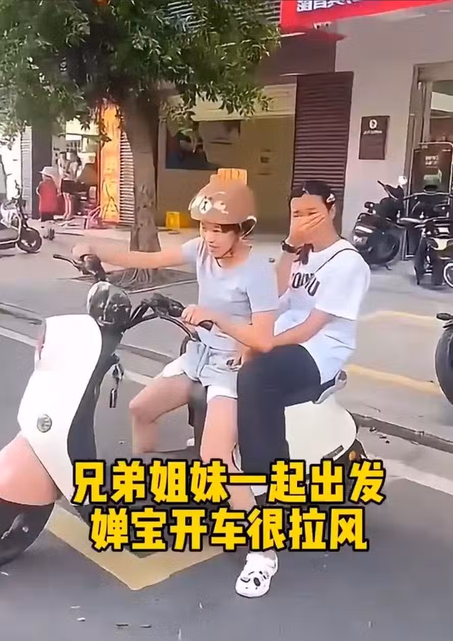 全紅嬋還載著自己的二姐,看著妹妹熟練的開電動,后座上的二姐一直捂著臉偷笑。