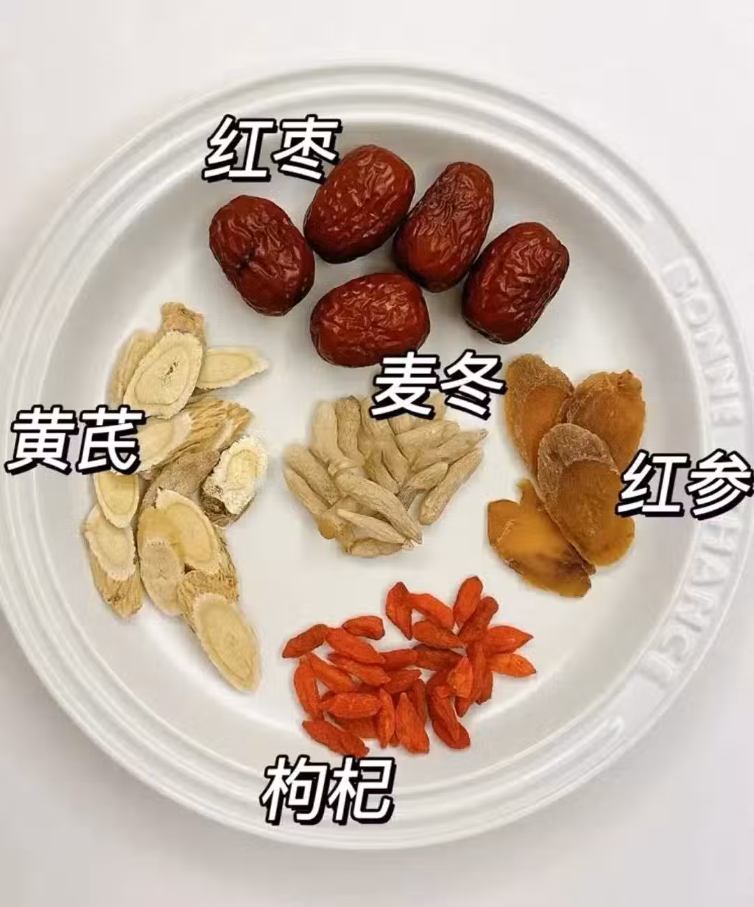 ①黃芪麥冬紅參水:經常臉色蠟黃,體寒怕冷,氣血虛弱又怕上火的姐妹一定要多喝這個黃芪麥冬紅參水,可以補血益氣,我每周都會安排喝幾次,補氣血真的管用,而且還不上火~ 【做法】:先準備好黃芪5g,麥冬5g,紅參5片,去核紅棗5顆,然後把這些食材全部洗乾淨倒入養生壺,加入適量的清水大火燒開,煮15分鐘,最後放入枸杞3g煮2分鐘即可,如放入保溫壺的話,需要放入500毫升的開水進行燜泡30分鐘即可。 ②黃芪麥冬當歸水:女孩子以氣為本,講究的是固本培元,所以日常女孩子要多喝這款黃芪麥冬當歸水,補氣血,還能增強身體免疫力,適合氣血虧損,怕冷,臉上蠟黃暗沉,做事情總提不起精神,感覺睏乏的姐妹一定要多喝哦~ 【做法】:先準備好黃芪5g,麥冬5g,紅參5片,當歸4片,去核紅棗5顆,再把這些食材全部洗乾淨放入養生壺,倒入適量的清水大火煮開,轉小火煮15分鐘,最近加入枸杞3g煮5分鐘即可,也可以放入保溫壺,加入500毫升的開水沖泡30分鐘即可。