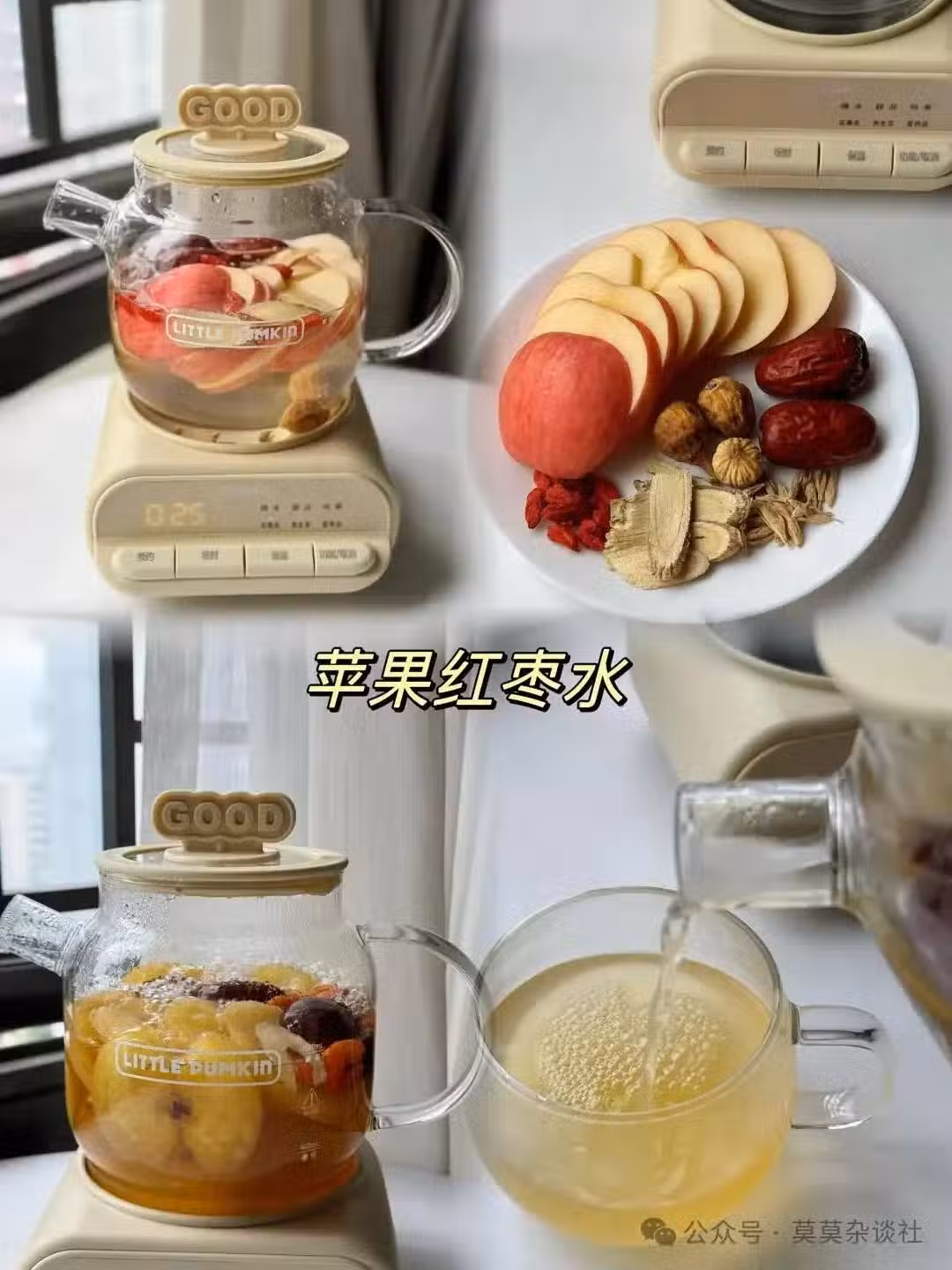 煮出來的蘋果紅棗水,香甜清潤,喝上一口就像被溫暖的陽光包圍。尤其是忙了一天後,來一杯能瞬間趕走疲憊。