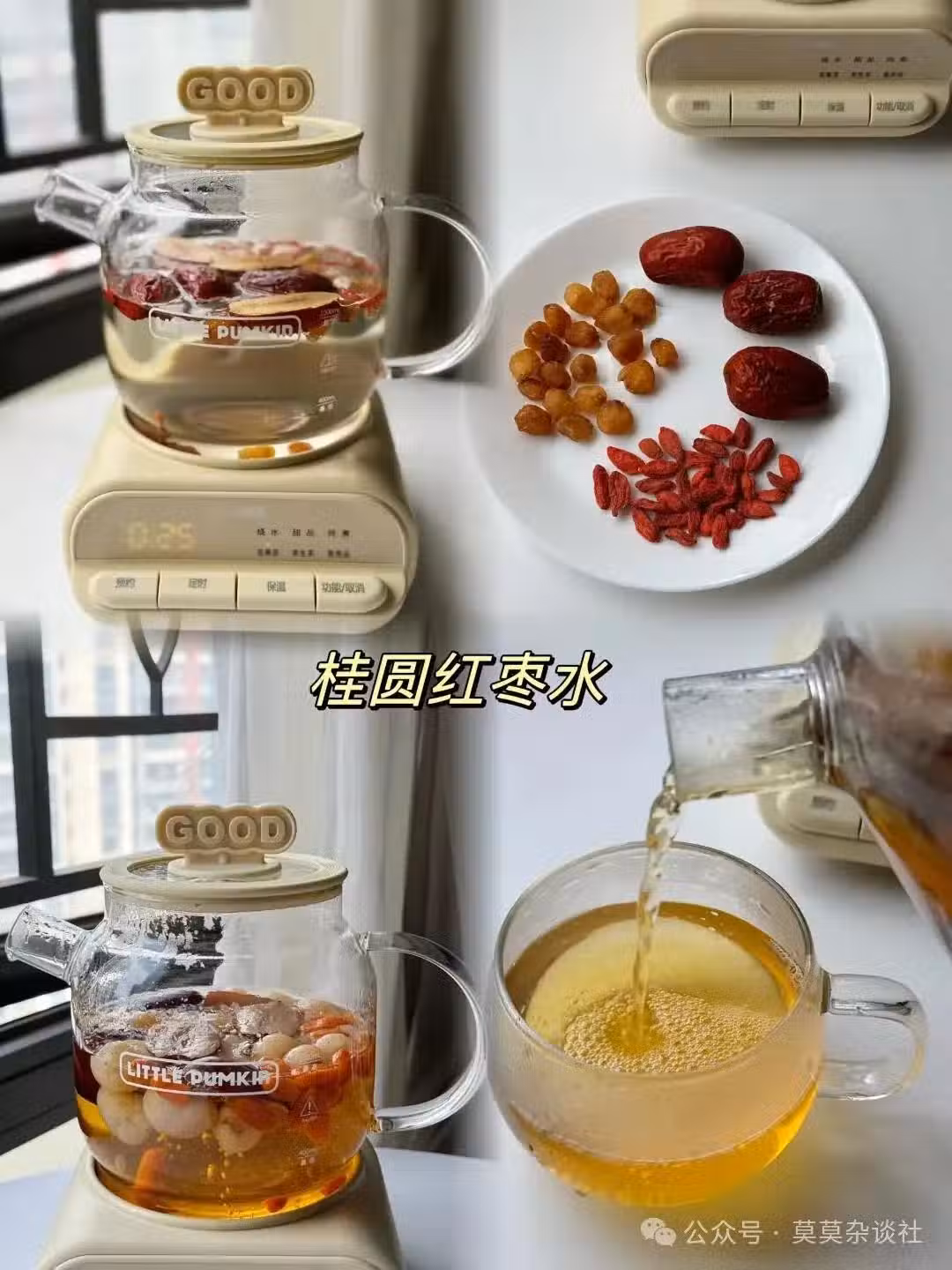 這一杯是冬天的「暖手神器」,特別適合手腳冰涼的女生。桂圓性溫,能補氣養血,紅棗和枸杞則能幫助改善氣色。喝上一段時間,不僅手暖了,連臉蛋都能喝出紅潤感!