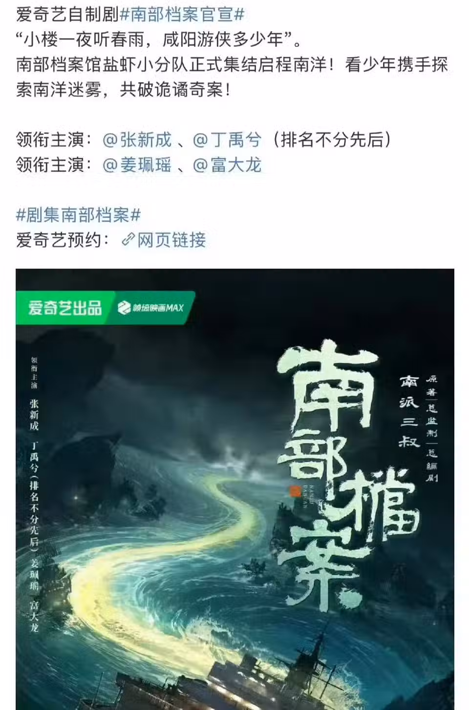 媽耶‼️民國懸疑劇《南部檔案》官宣‼️張新成丁禹兮領銜,雙男主陣容吸睛,網友:又有好劇看了