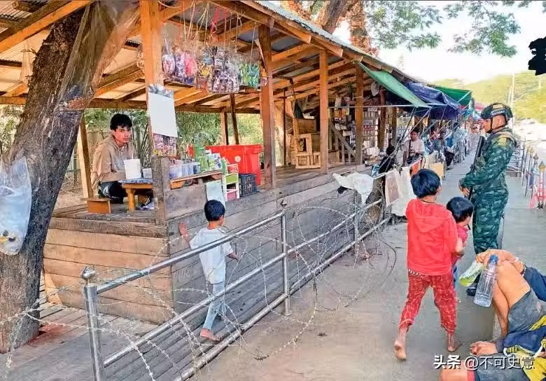 泰緬邊境只有鐵絲網分隔,泰國邊境一方有持槍軍人巡邏