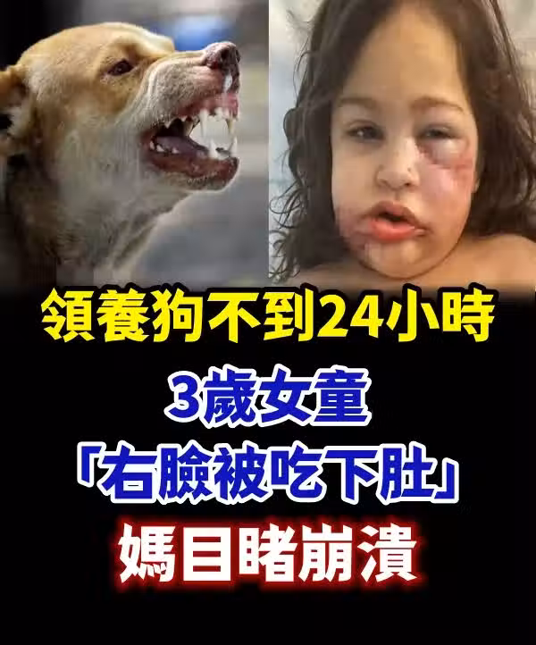 領養狗不到24小時 3歲女童(右臉被吃下肚 )媽目睹崩潰