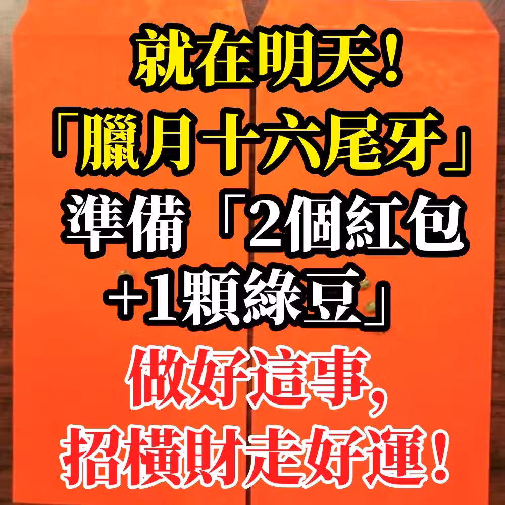 就在明天! 1/15日「臘月十六尾牙」準備「2個紅包+1顆綠豆」做好這事,招橫財走好運!