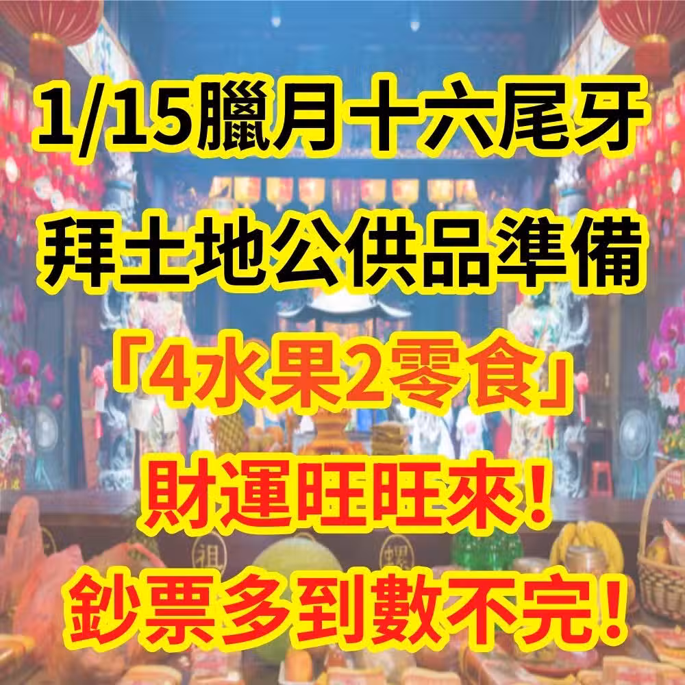 1/15臘月十六尾牙!拜土地公供品準備「4水果2零食」財運旺到鈔票數不完!
