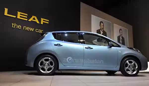 圖為日產公司生產的Leaf電動汽車。(Kazuhiro Nogi/AFP via Getty Images)