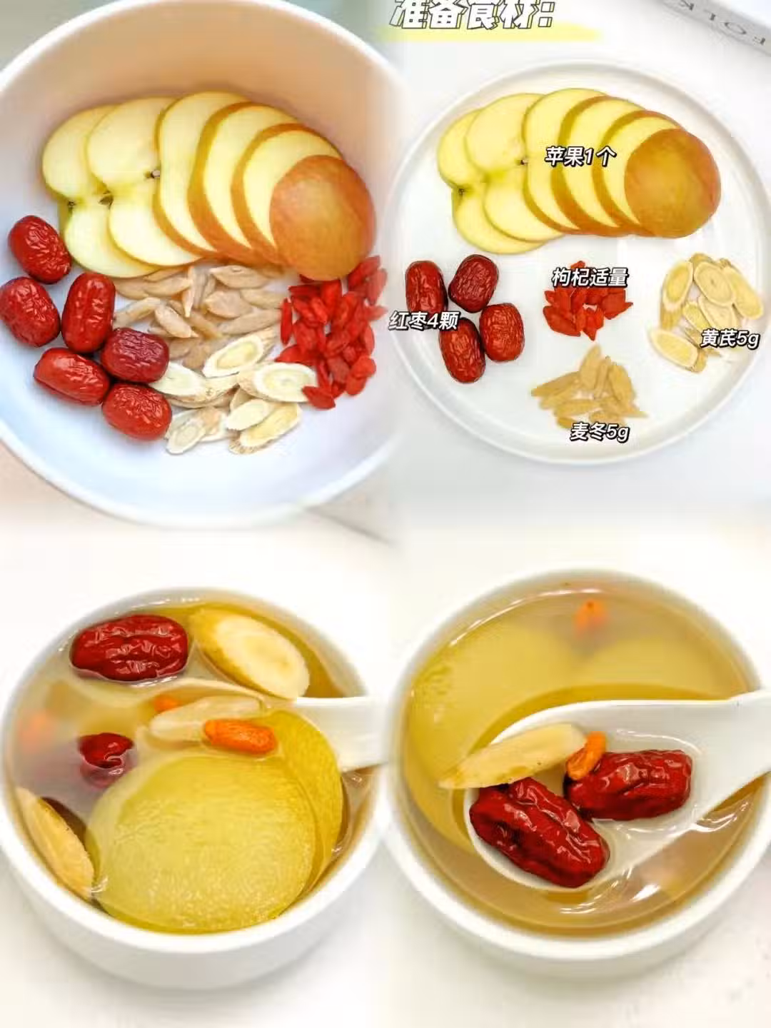 2.蘋果+黃芪+麥冬+紅棗+枸杞