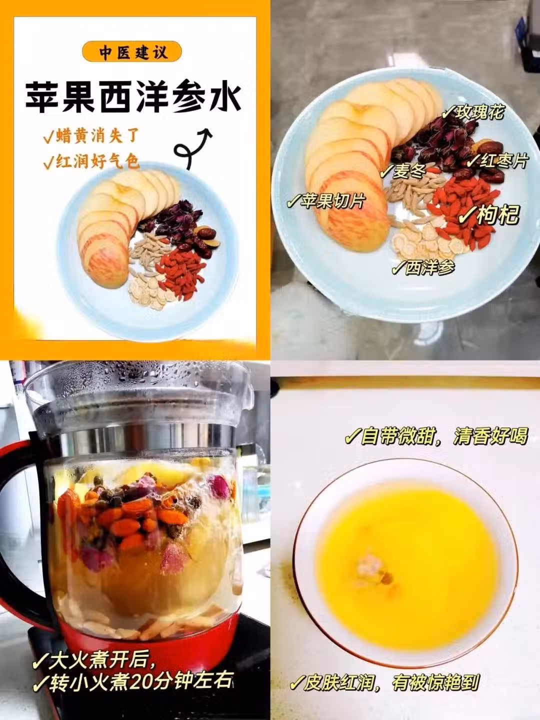 3.蘋果+麥冬+西洋參+玫瑰花+紅棗+枸杞(無需額外放糖)