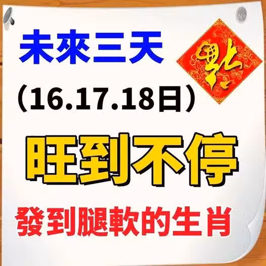 未來三天(1月16.17.18日)旺到不停,發到腿軟的生肖