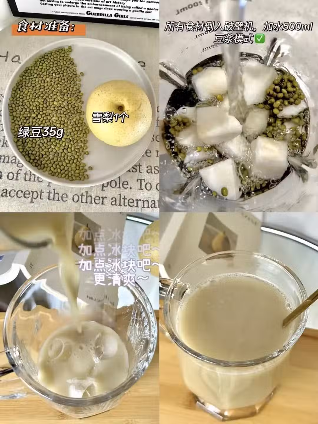• 按下豆漿模式,待機器工作完成後,過濾掉殘渣(如果喜歡細膩口感也可以不過濾),一杯清甜潤肺的綠豆雪梨飲就大功告成了。在乾燥的季節或者上火的時候喝上一杯,感覺身體的燥熱和肝火都被撲滅了。