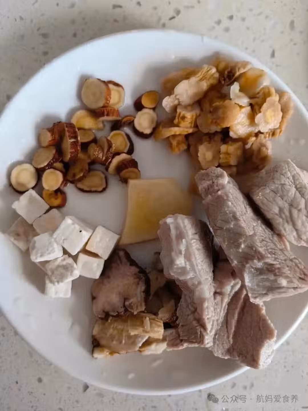 【食材】:黨參20克,白朮20克,茯苓20克,炙甘草10克,瘦肉200克。
