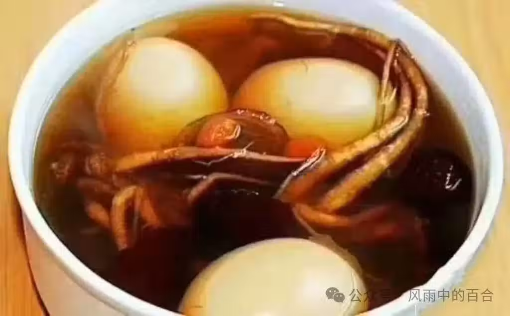 【做法】:將當歸、益母草、香附、田七、雞蛋同清水煮至雞蛋熟後,去殼再煮15分鐘,去渣取汁,喝湯吃蛋,每次1個,每天2-3次,連續3-5天。