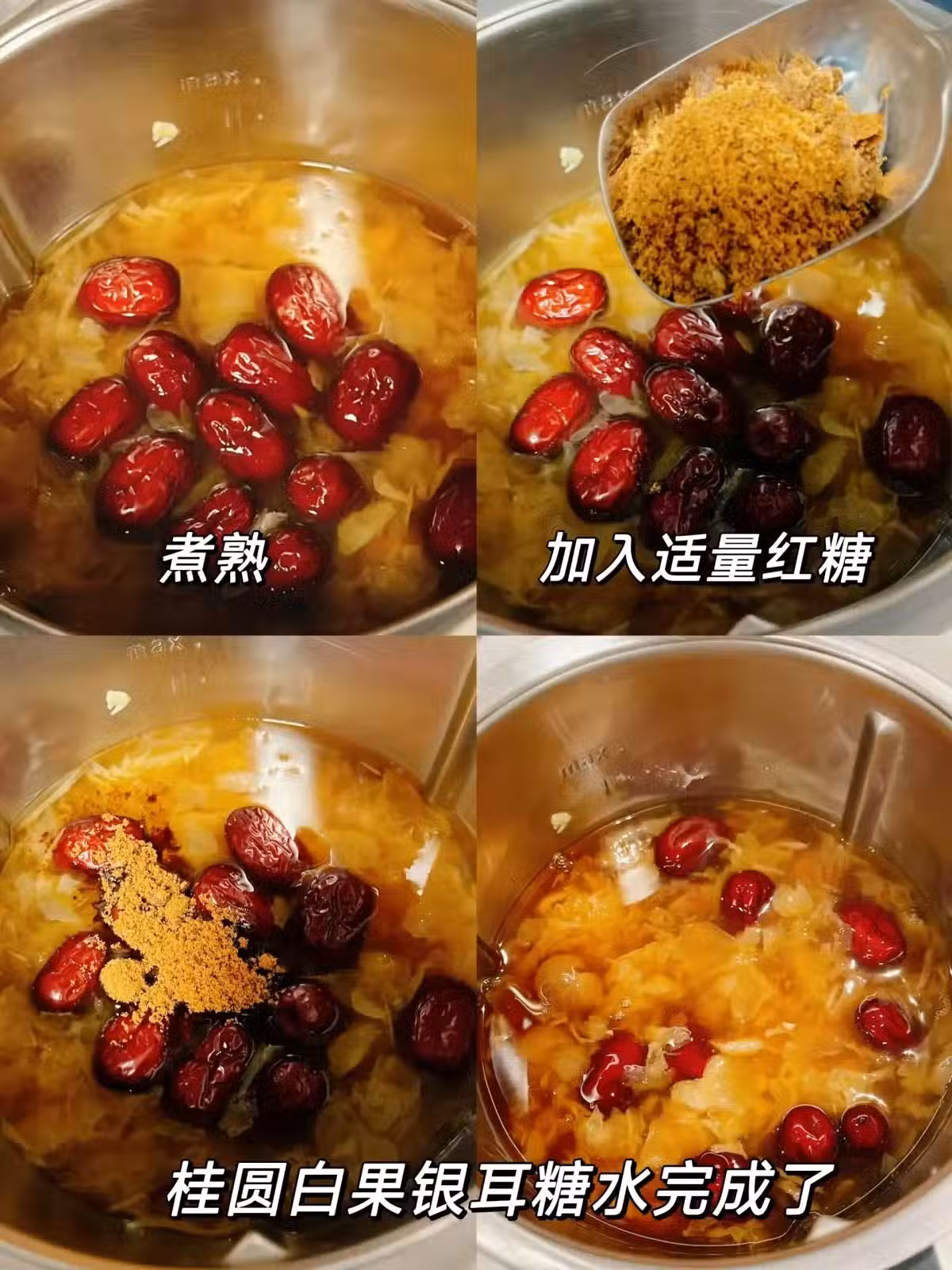 一碗口感黏順,滑滑、甜甜蜜蜜、營養豐富的桂圓白果銀耳糖水可以和家人分享了!