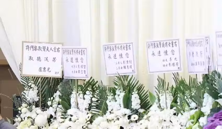 在演藝圈一直有著好人緣的她,現場也來了很多演藝圈名人,像是成龍、郭可盈、林文龍、熊黛林等人,都到場哀悼,看好友最後一面,而她的男星前夫盧惠光,送上的花牌則是被擺在靈堂最中間、最顯眼的位置,