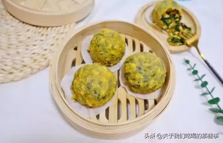 4、蒸籠里舖上防粘的油紙,放入弄好的菜糰子,蒸鍋加水大火燒開,蒸8~10分鐘,菜糰子就蒸好了,皮薄餡大,非常好吃,蛋白質、碳水、粗纖維都有了,飽腹還不長肉。