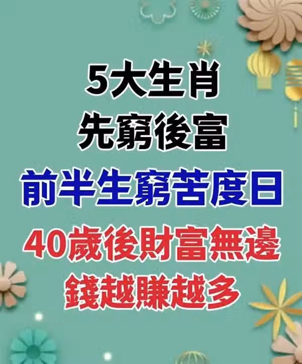 先窮後富!前半生窮苦度日,40歲後財富無邊,錢越賺越多的5大生肖 !