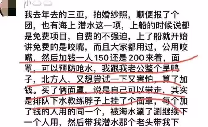 女子在三亞潛水遭教練「取下氧氣罩」表示加錢拍照「評論區」紛紛表示陷入類似困境