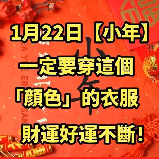 明天1月22日【小年】一定要穿「這個顏色的衣服」,財運好運不斷!