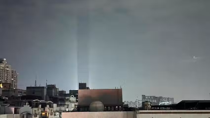 這位民眾在臉書社群「路上觀察學院」分享照片,只見漆黑夜空中突然出現一道極為耀眼的白色光束,突然照亮夜空,不少人直呼是天有異象!