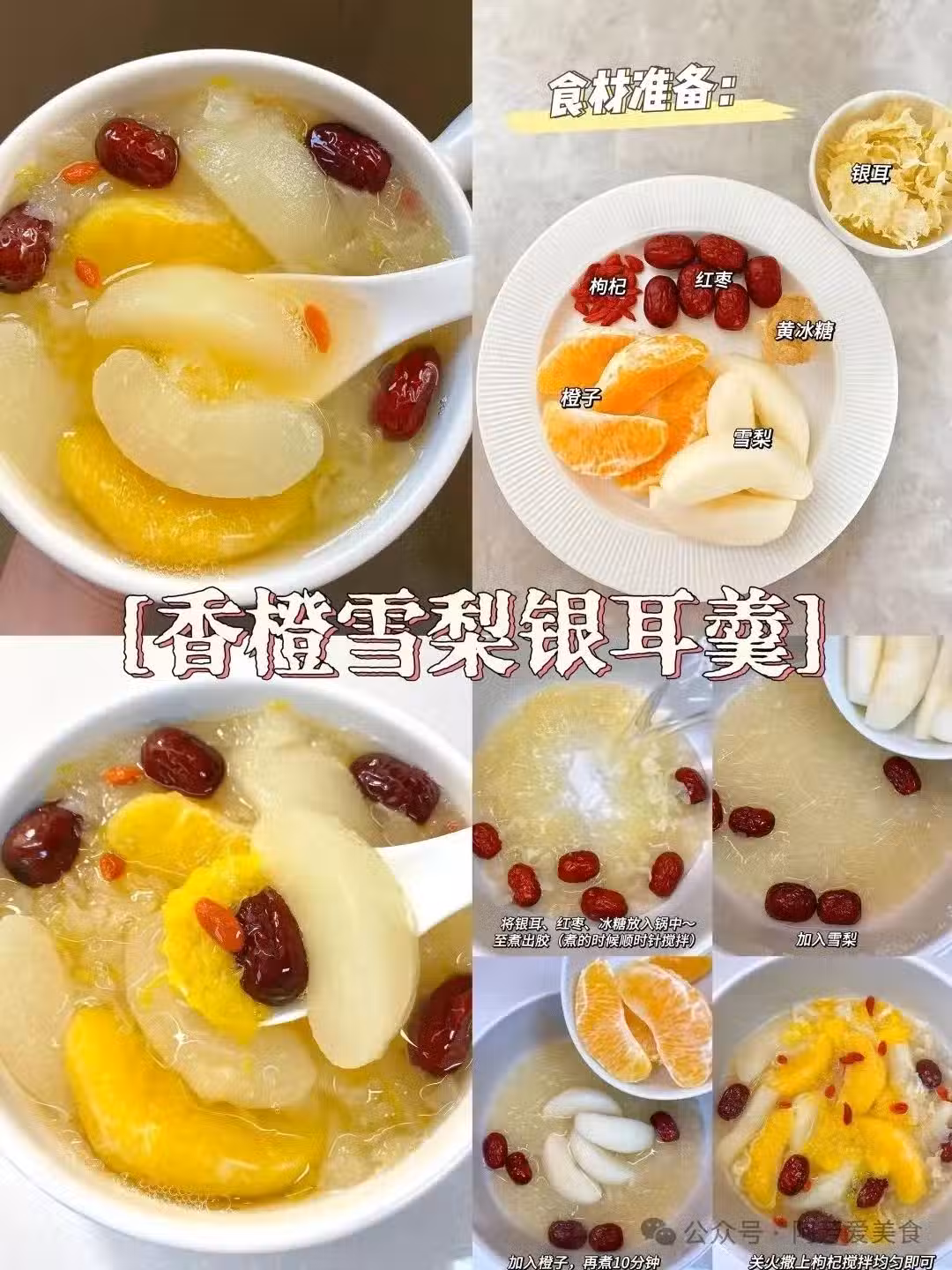 香橙雪梨銀耳羹,這款也非常的適合小孩子喝。橙子的香甜口感在融入了雪梨的甜味,搭配銀耳,喝了一口讓人還想喝。