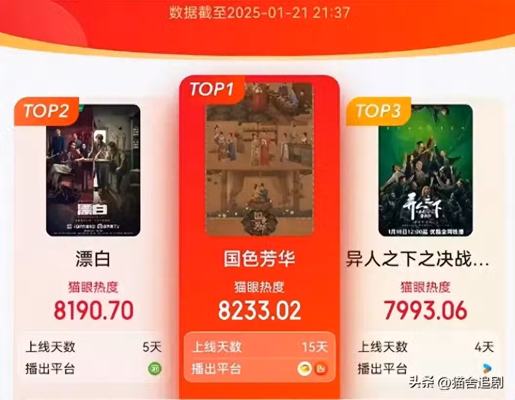 25年全網最火的6部劇集,古裝占4個席位,犯罪劇《漂泊》勢頭強勁**