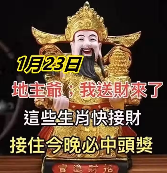 今天1月23日,地主爺說:我送橫財來了!這些生肖,今晚必中頭獎!