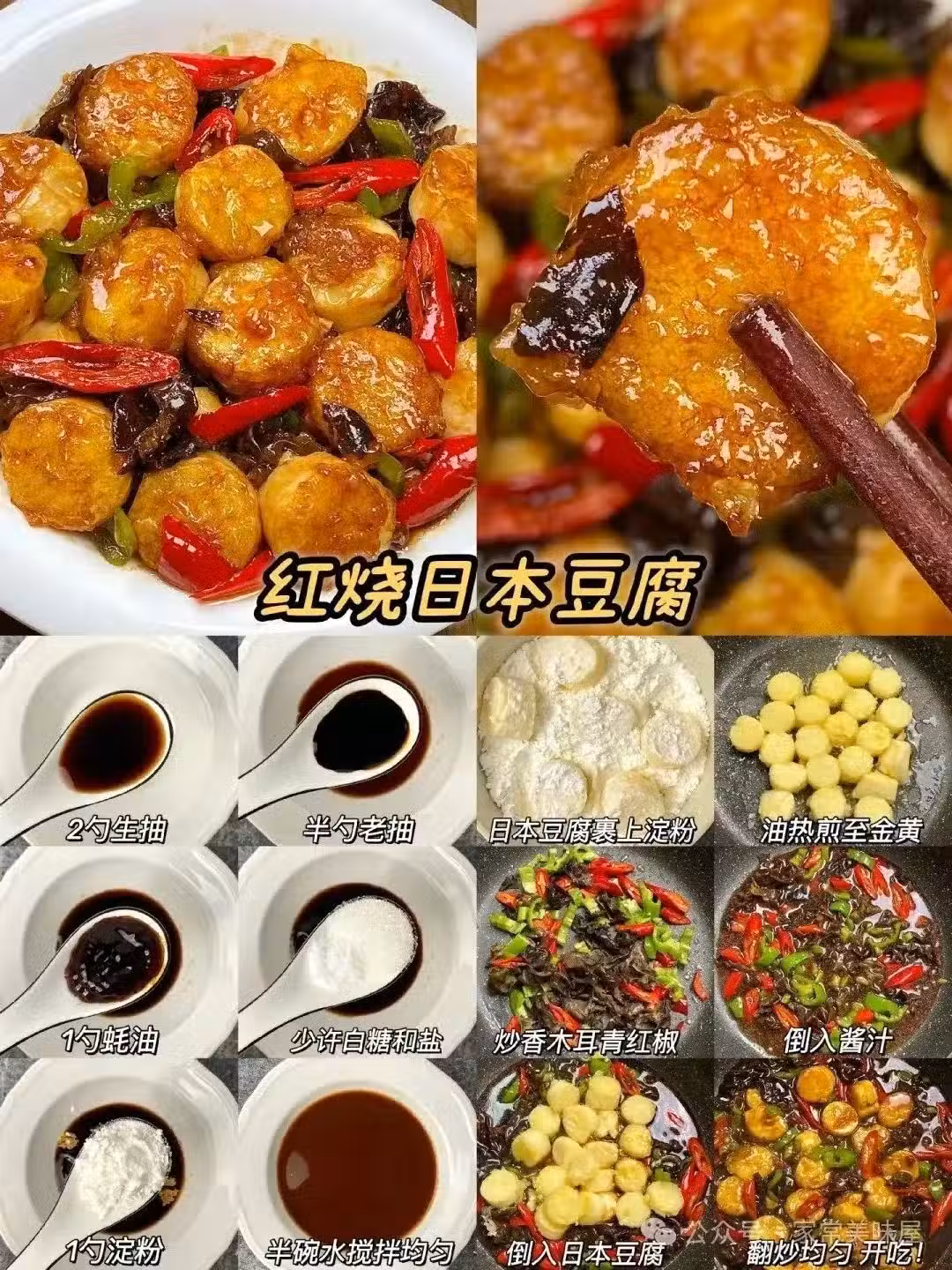 這道紅燒日本豆腐,口感滑嫩,吸滿了醬汁,味道濃郁且回味無窮。