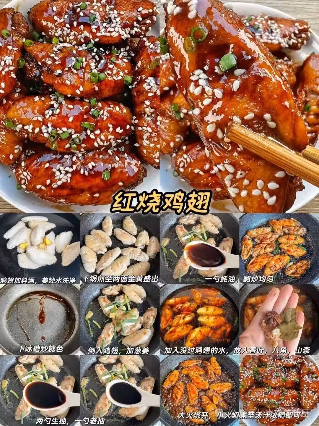 紅燒雞翅肉嫩多汁,味道香甜,雞皮酥脆,十分誘人。