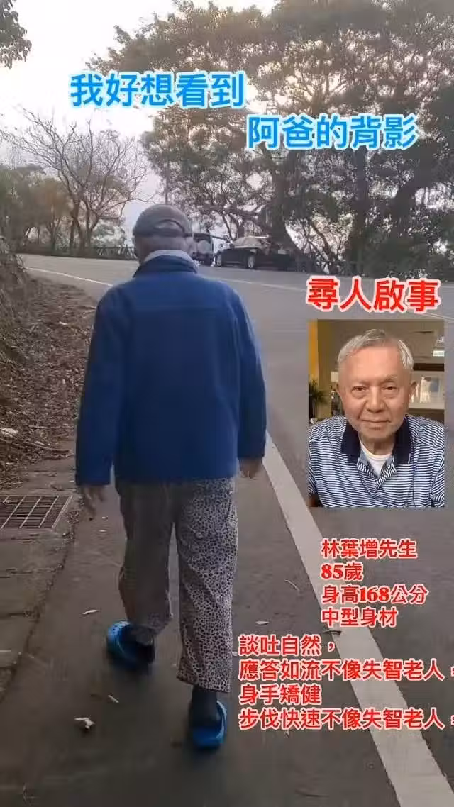 她也呼籲台北市至善路三段附近的民眾,協助留意其父親的蹤影。
