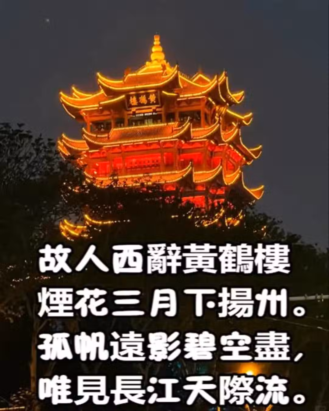 這也是李白非常著名的一首詩了,孟浩然要東去廣陵,李白相約在黃鶴樓為孟浩然送別,沒有離愁別緒,心情非常愉悅,整首詩充滿了詩意。