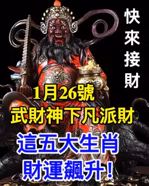 1月26號武財神下凡派財,這五大生肖財運飆升!想要致富的,快來接財!!!