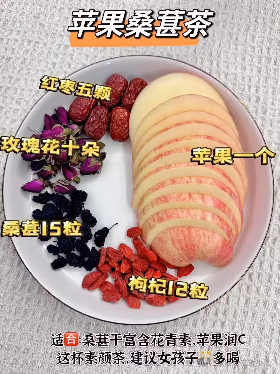 3. 蘋果+山楂+茯苓+枸杞:刮油解膩。