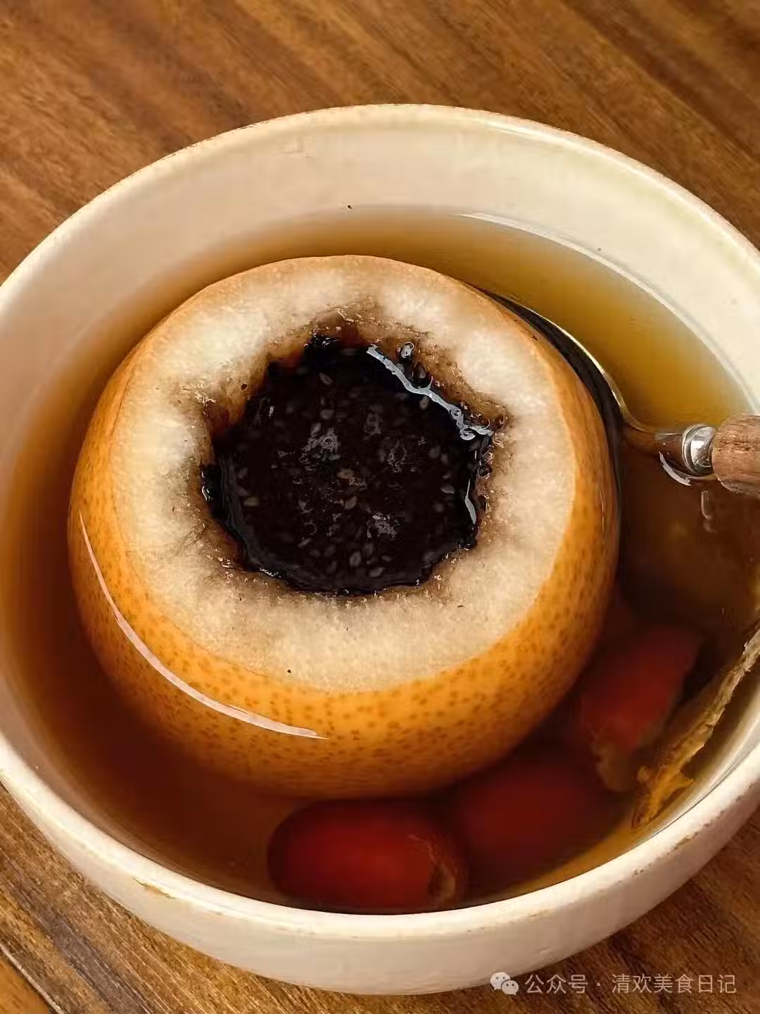 雪梨燉黑芝麻,潤肺止咳超給力!黑芝麻滋補肝腎,雪梨清熱潤燥,兩者一起燉,滋陰又養肺。吃了能緩解咳嗽、喉嚨痛,還能烏髮黑髮、美容養顏。口感香甜潤滑,很適合一天到晚都咳不停的人,尤其是一躺下就想咳,睡著了都能被咳醒的人。效果很不錯!自然食材,溫和調理,大人小孩都可以用這個方法。