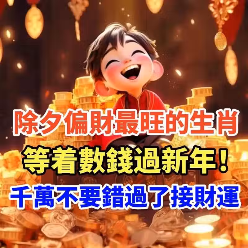 農曆新年將至,除夕夜可說是一年中最重要的日子。這一天,不僅是家人團聚的時刻,更是財運翻倍的絕佳機會!而今年的除夕,特別有五大生肖的偏財運旺到爆棚,他們將迎來驚喜連連的橫財機會,數錢數到手軟,開啟富貴的一年!如果你或家人屬於牛、蛇、羊、龍或馬,這一天千萬不要錯過了接財運的好時機!