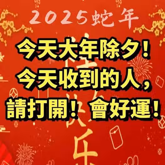 今天大年除夕!今天收到的人請打開!會帶好運!