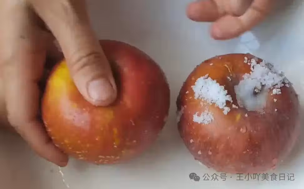 蘋果的清洗與切割:將蘋果置於流動水下,用軟刷子輕輕刷洗表面,去除農藥殘留和果蠟。隨後,在一個乾淨的盆中倒入清水,加入一小撮食用鹽,將蘋果完全浸濕後,利用鹽的摩擦作用,仔細搓洗蘋果的表皮,特別是凹陷處,確保徹底清潔。